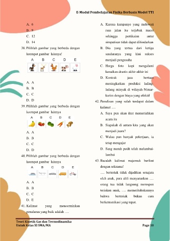 39. Pilihlah gambar yang berbeda dengan kalimat ….