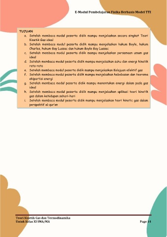 d. Setelah membaca modul peserta didik mampu menjelaskan suhu dan energi kinetik