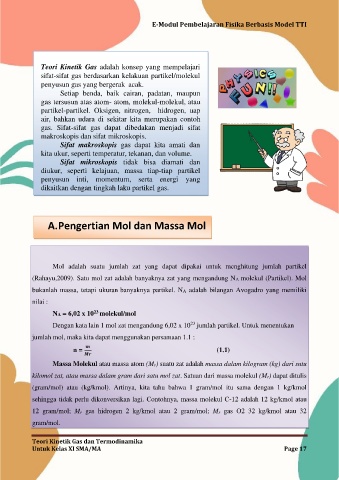 (Rahayu,2009). Satu mol zat adalah banyaknya zat yang mengandung NA molekul (Partikel). Mol
