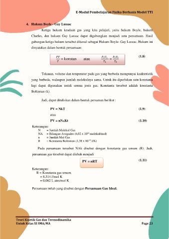 gabungan ketiga hukum tersebut dikenal sebagai Hukum Boyle- Gay Lussac. Hukum ini