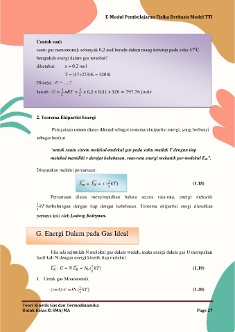 Pernyataan umum diatas dikenal sebagai teorema ekuipartisi energi, yang berbunyi