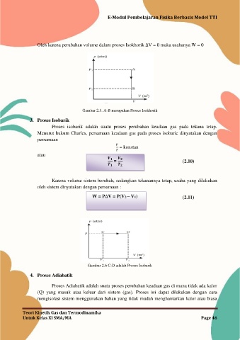 Oleh karena perubahan volume dalam proses Isokhorik ∆V = 0 maka usahanya W = 0