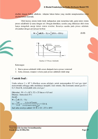proses adiakbatik Q sama dengan nol. Dengan demikian, uasaha yang dilakukan oleh sitem