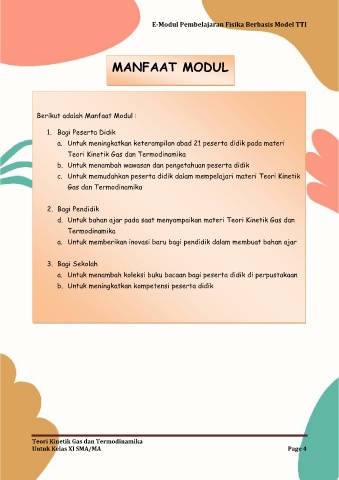 d. Untuk bahan ajar pada saat menyampaikan materi Teori Kinetik Gas dan