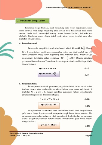 adiabatik. Perubahan energi dalam terjadi pada setiap proses tersebut yang akan