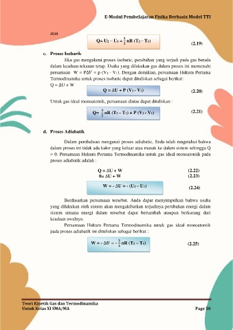 = 0. Persamaan Hukum Pertama Termodinamika untuk gas ideal monoatomik pada