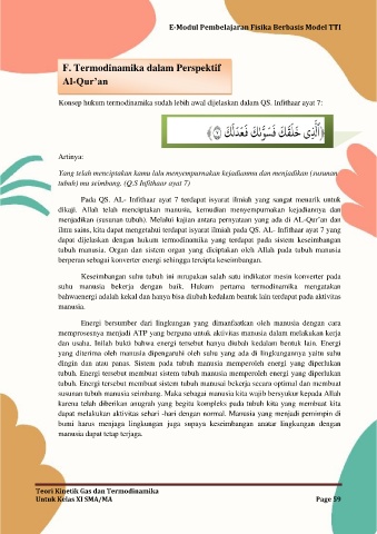 Konsep hukum termodinamika sudah lebih awal dijelaskan dalam QS. Infithaar ayat 7: