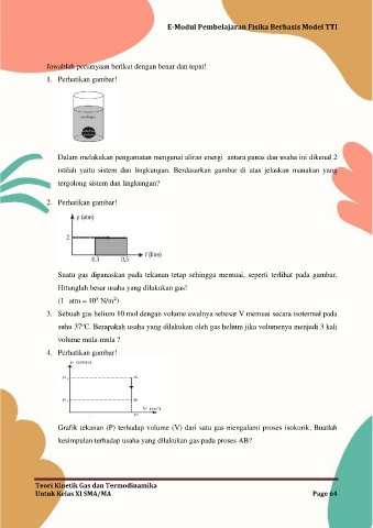 Suatu gas dipanaskan pada tekanan tetap sehingga memuai, seperti terlihat pada gambar.