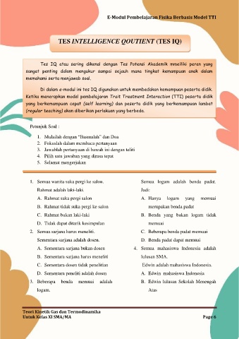 Di dalam e-modul ini tes IQ digunakan untuk membedakan kemampuan peserta didik.