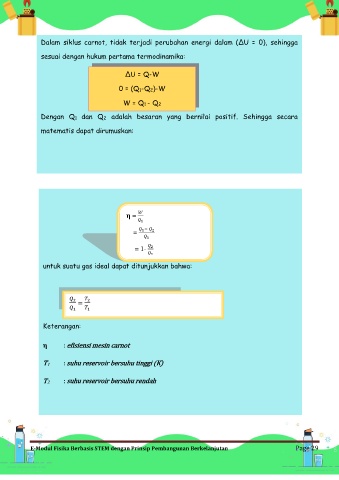 Dalam siklus carnot, tidak terjadi perubahan energi dalam (∆U = 0), sehingga
