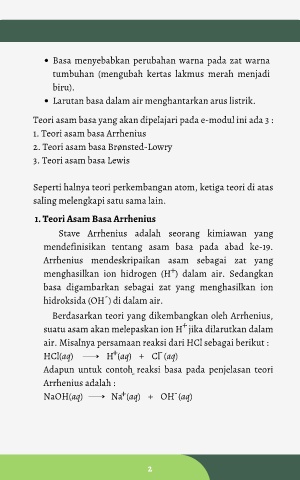 Teori asam basa yang akan dipelajari pada e-modul ini ada 3 :