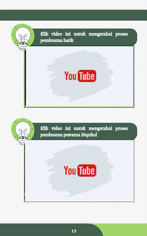 Klik video ini untuk mengetahui proses pembuatan batik Klik video ini untuk mengetahui proses pembuatan pewarna Napthol 1 4 1 3