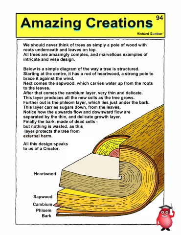 Starting at the centre, it has a rod of heartwood, a strong pole to