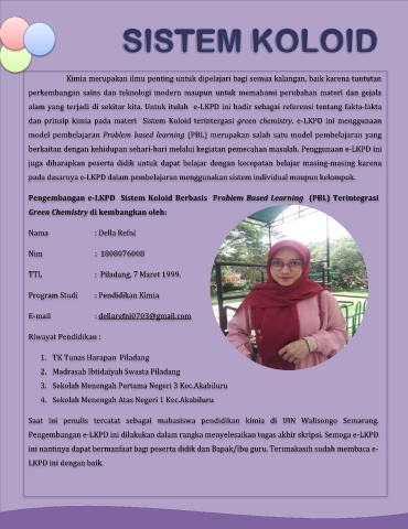 E-LKPD Sistem Koloid Berbasis Problem Based (PBL) Terintegrasi Green Chemistry
