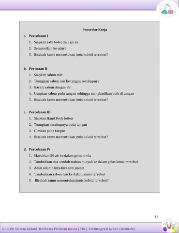E-LKPD Sistem Koloid Berbasis Problem Based (PBL) Terintegrasi Green Chemistry
