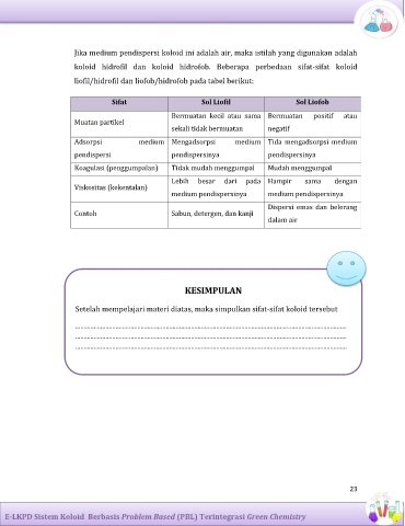 E-LKPD Sistem Koloid Berbasis Problem Based (PBL) Terintegrasi Green Chemistry