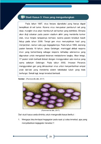 bereplikasi di sel tumor. Karena virus merupakan pembunuh sel yang