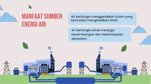 MANFAAT SUMBER Air berfungsi menggerakkan turbin yang ENERGI AIR kemudian menghasilkan listrik Air berfungsi untuk menjaga keseimbangan dan keberlanjutan ekosistem