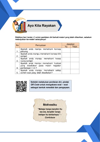 Silahkan beri tanda (√) untuk penilaian diri terkait materi yang telah diberikan, sebelum