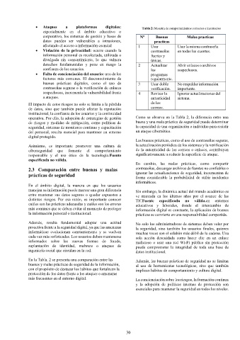 • Ataques a plataformas digitales: Tabla 2: Muestra de comportamientos correctos e incorrectos