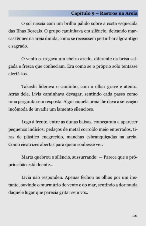 das Ilhas Boreais. O grupo caminhava em silêncio, deixando mar-
