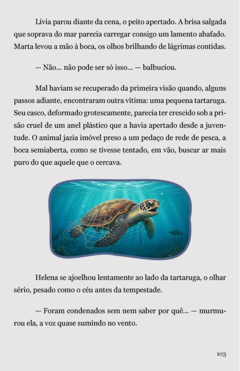 Helena se ajoelhou lentamente ao lado da tartaruga, o olhar
