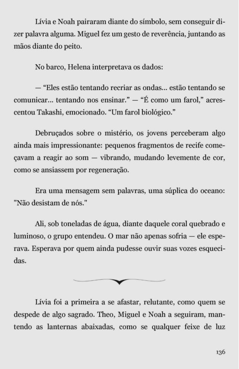 luminoso, o grupo entendeu. O mar não apenas sofria — ele espe-