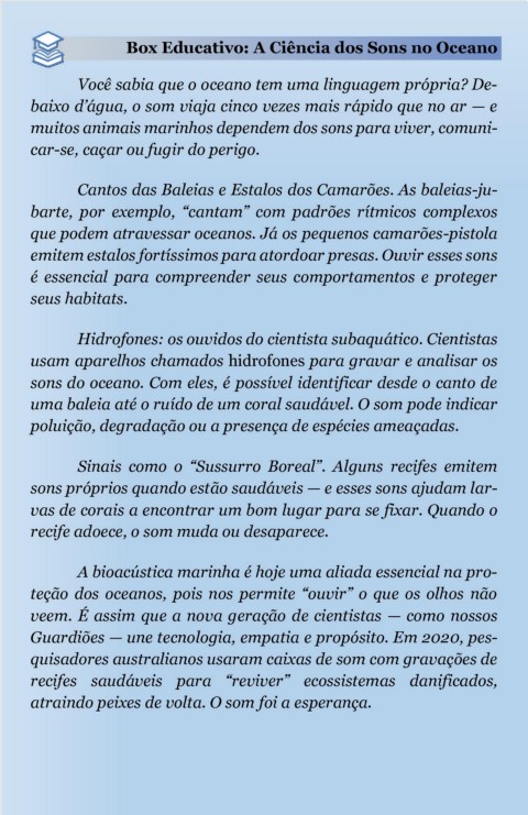 sons do oceano. Com eles, é possível identificar desde o canto de