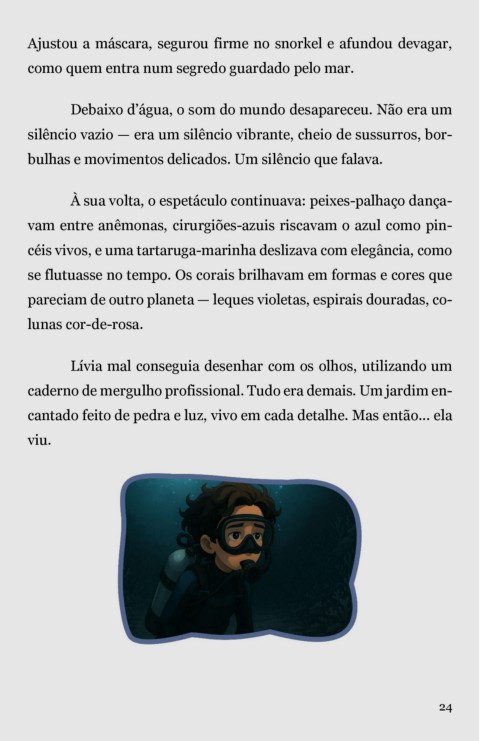 se flutuasse no tempo. Os corais brilhavam em formas e cores que