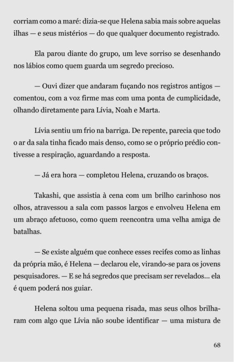 — Já era hora — completou Helena, cruzando os braços.