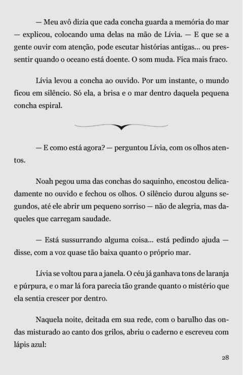 Lívia levou a concha ao ouvido. Por um instante, o mundo