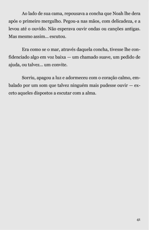 Ao lado de sua cama, repousava a concha que Noah lhe dera