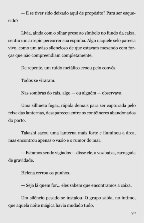 Lívia, ainda com o olhar preso ao símbolo no fundo da caixa,