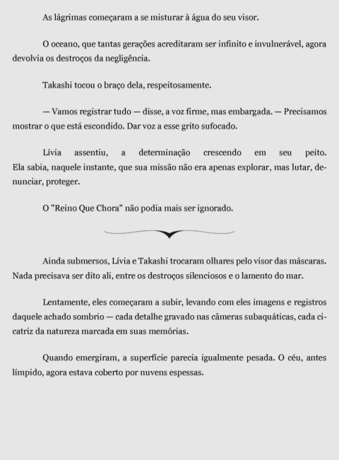 Ainda submersos, Lívia e Takashi trocaram olhares pelo visor das máscaras.