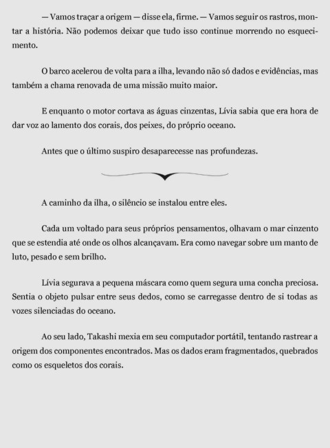 E enquanto o motor cortava as águas cinzentas, Lívia sabia que era hora de