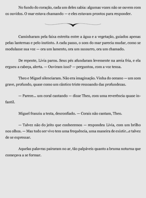 Theo e Miguel silenciaram. Não era imaginação. Vinha do oceano — um som