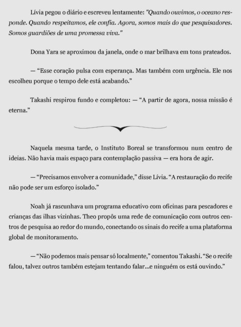 Lívia pegou o diário e escreveu lentamente: "Quando ouvimos, o oceano res-