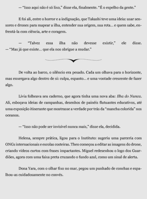 Lívia folheava seu caderno, que agora tinha uma nova aba: Ilha do Nunca.