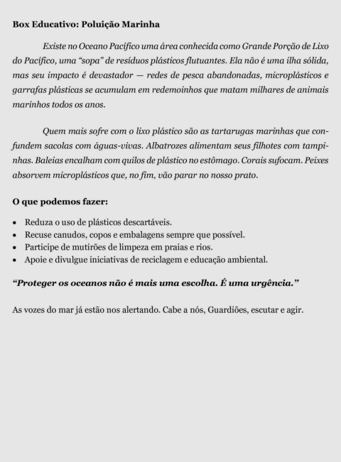 As vozes do mar já estão nos alertando. Cabe a nós, Guardiões, escutar e agir.