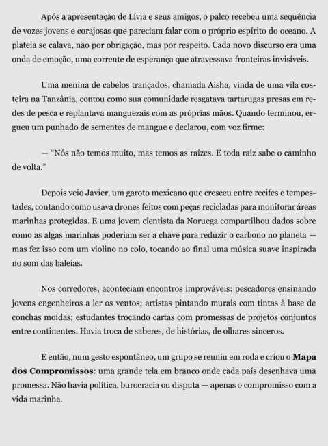 de vozes jovens e corajosas que pareciam falar com o próprio espírito do oceano. A