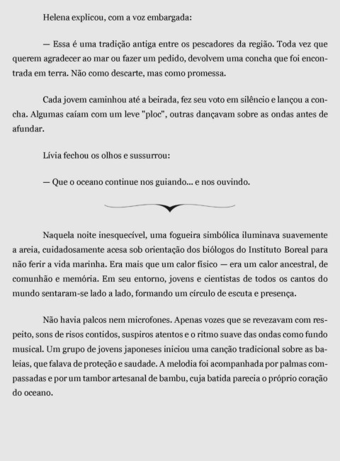 não ferir a vida marinha. Era mais que um calor físico — era um calor ancestral, de