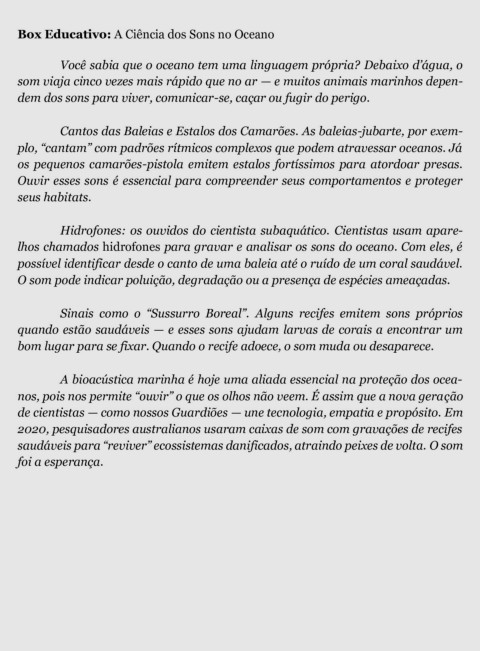 Sinais  como  o  “Sussurro  Boreal”.  Alguns  recifes  emitem  sons  próprios