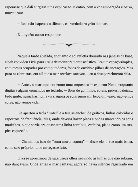 — Antes, o mar aqui era como uma orquestra — explicou Noah, enquanto