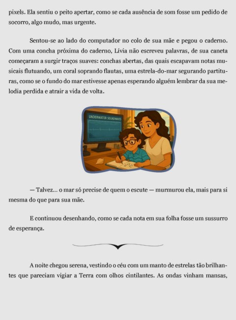 — Talvez… o mar só precise de quem o escute — murmurou ela, mais para si