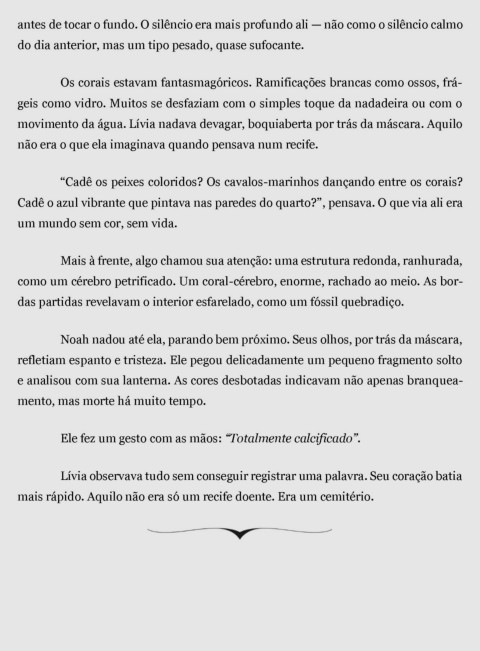 movimento da água. Lívia nadava devagar, boquiaberta por trás da máscara. Aquilo