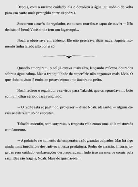 — O recife está se partindo, professor — disse Noah, ofegante. — Alguns co-