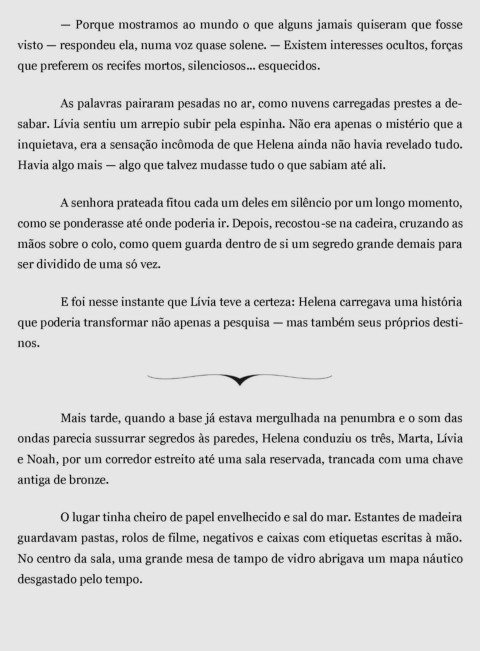 ondas parecia sussurrar segredos às paredes, Helena conduziu os três, Marta, Lívia