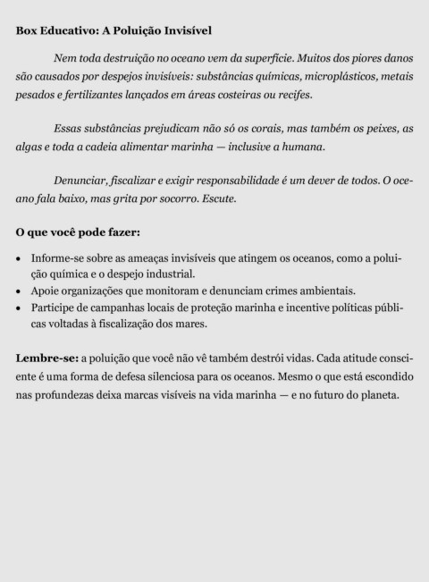 • Informe-se sobre as ameaças invisíveis que atingem os oceanos, como a polui-