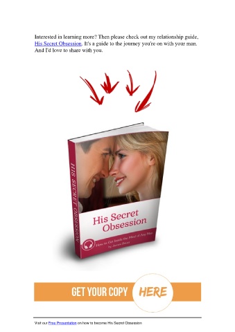 Interested in learning more? Then please check out my relationship guide, His Secret Obsession. It's a guide to the journey you're on with your man. And I'd love to share with you. Visit our Free Presentation on how to become His Secret Obsession
