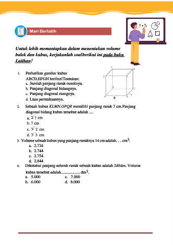 balok dan kubus, kerjakanlah soal berikut ini pada buku